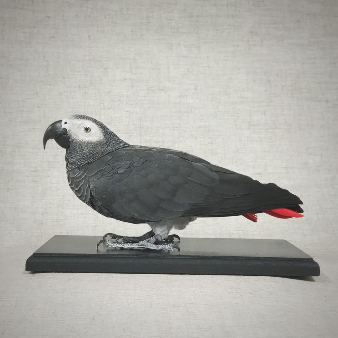 This meticulously crafted African Grey Parrot Full Body Mount showcases the natural intelligence and understated beauty of one of the world’s most recognizable bird species. Artfully preserved by skilled taxidermists, this piece accurately presents the distinct features of the African Grey, featuring detailed feather textures and realistic glass eyes. It is positioned in a natural, standing profile pose, emphasizing its dignified form.