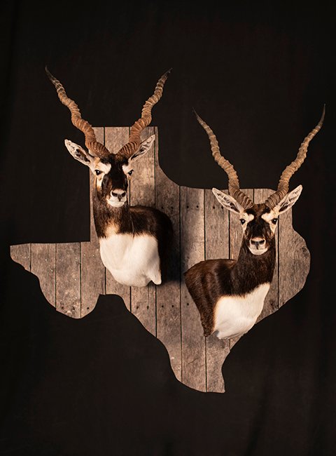 - Museum-quality double Blackbuck shoulder wall mount