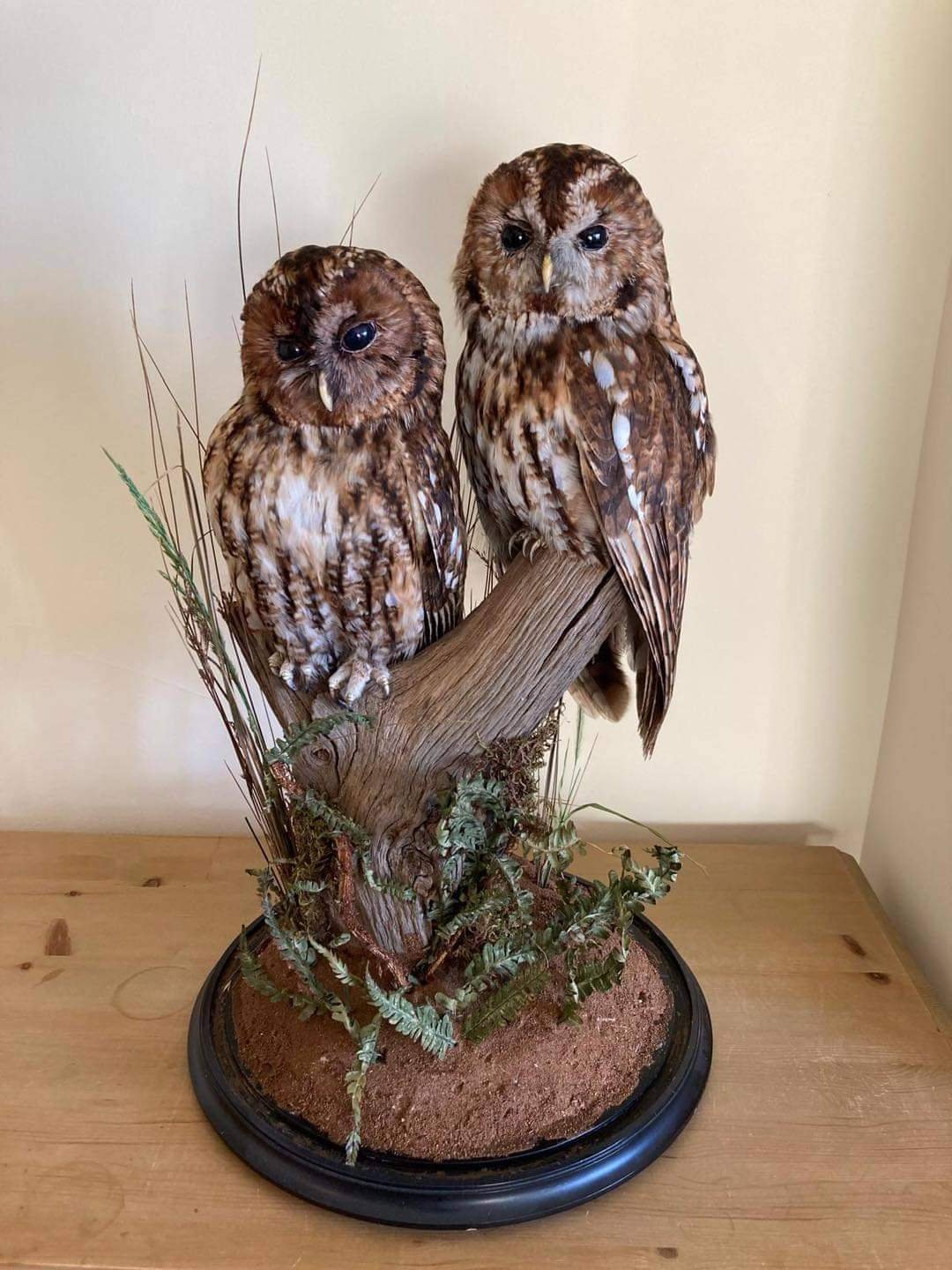 - Museum-quality Tawny Owl pair full body mount